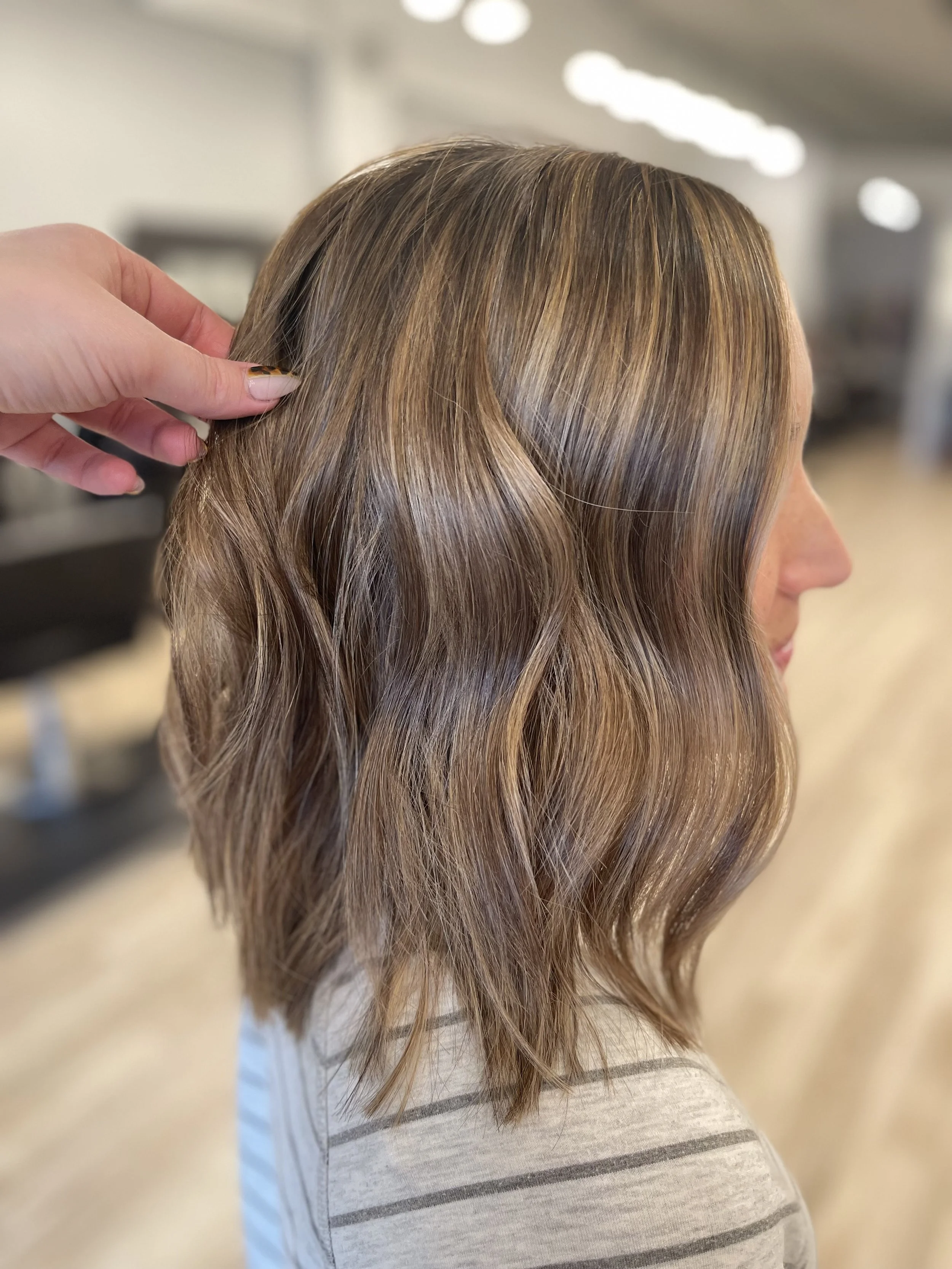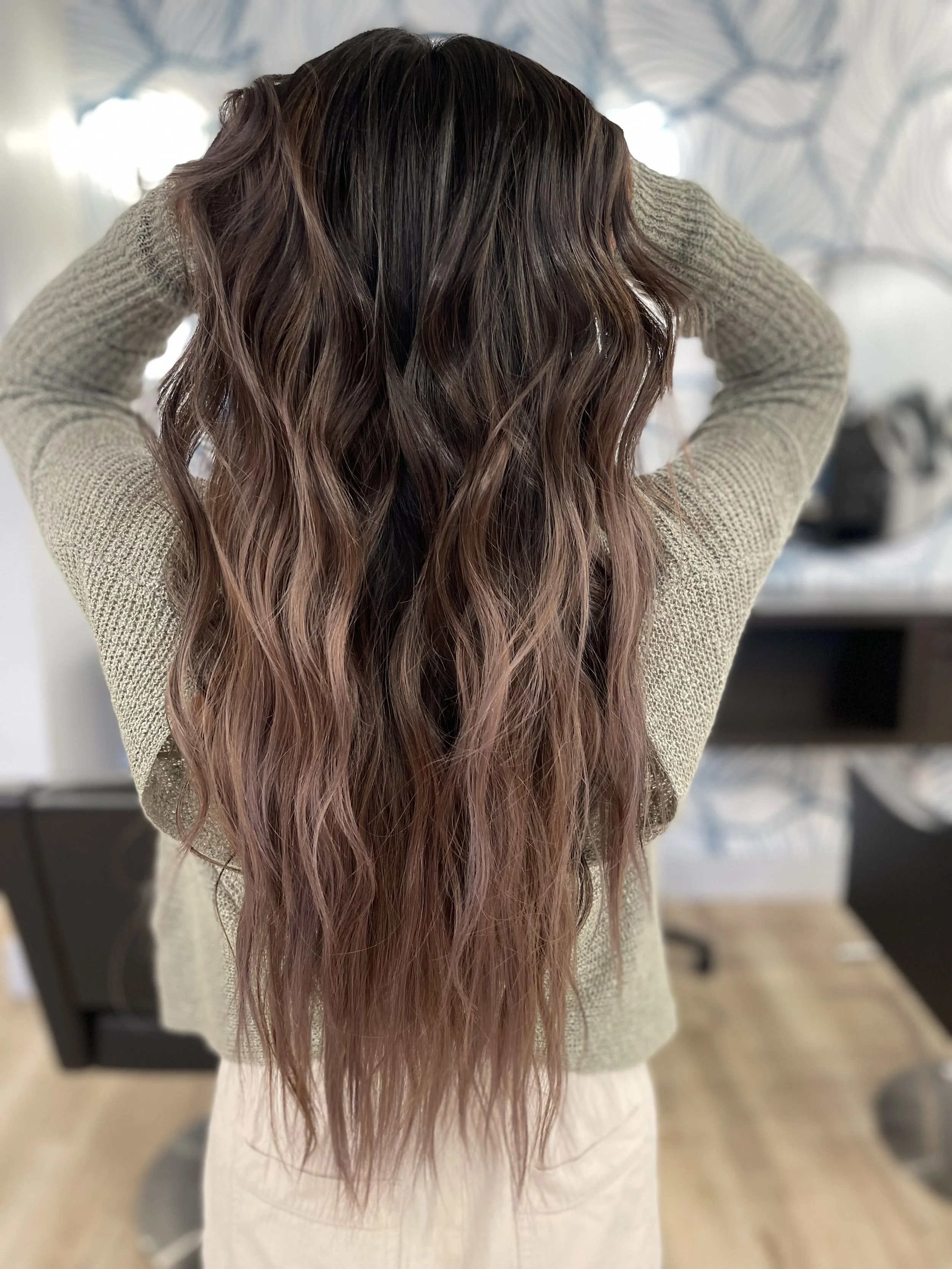 A custom lightening service is creating dimension in the hair while using balayage or foil techniques to achieve your hair goals. You will be able to fully customize placement, tones/depth. Ideal for those looking for lower maintenance and a “lived in” style. INCLUDES.. Root shadow + toner/gloss
