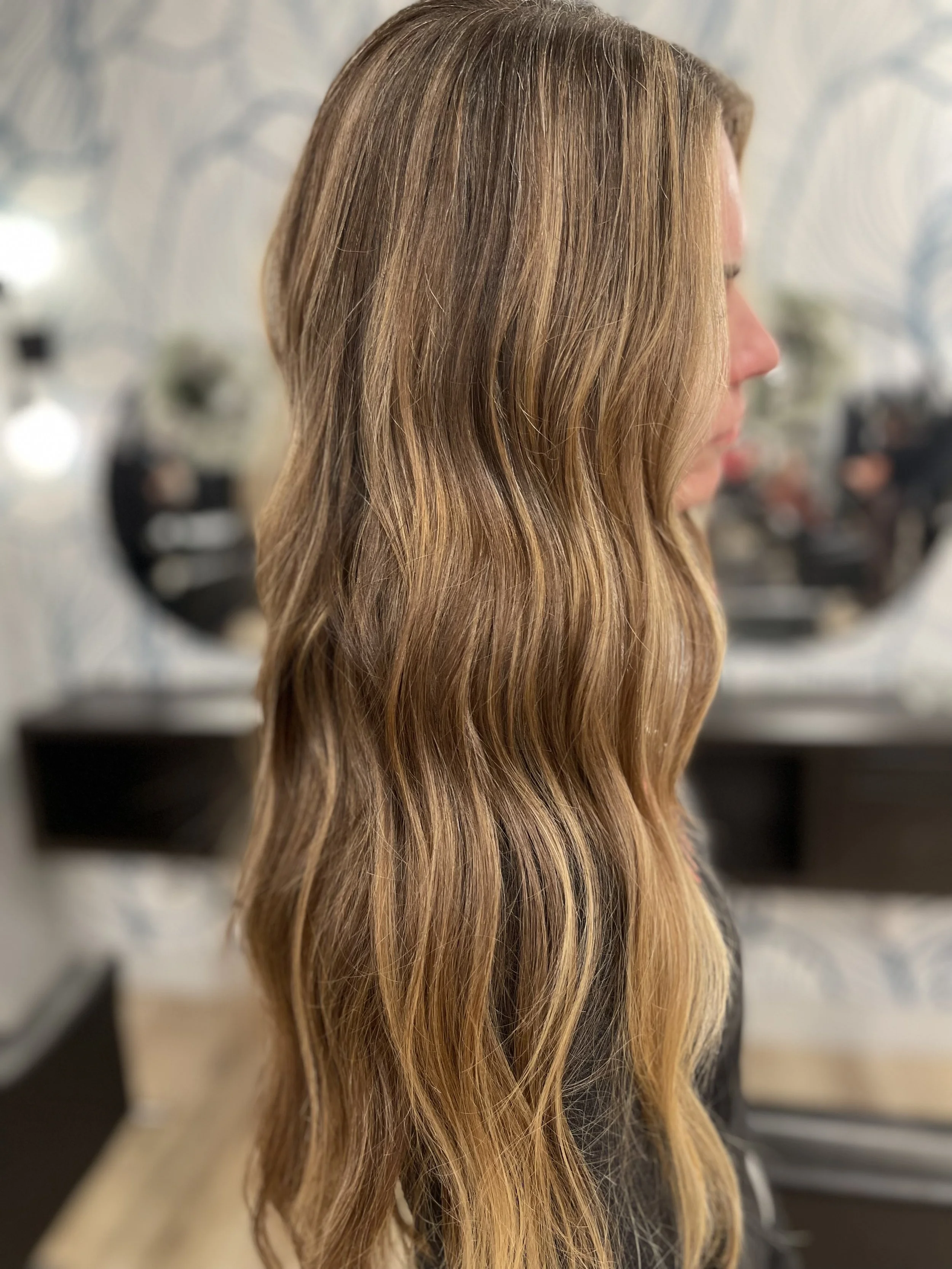 Dimensional highlight from roots to ends. INCLUDES.. toner/gloss + root shadow.