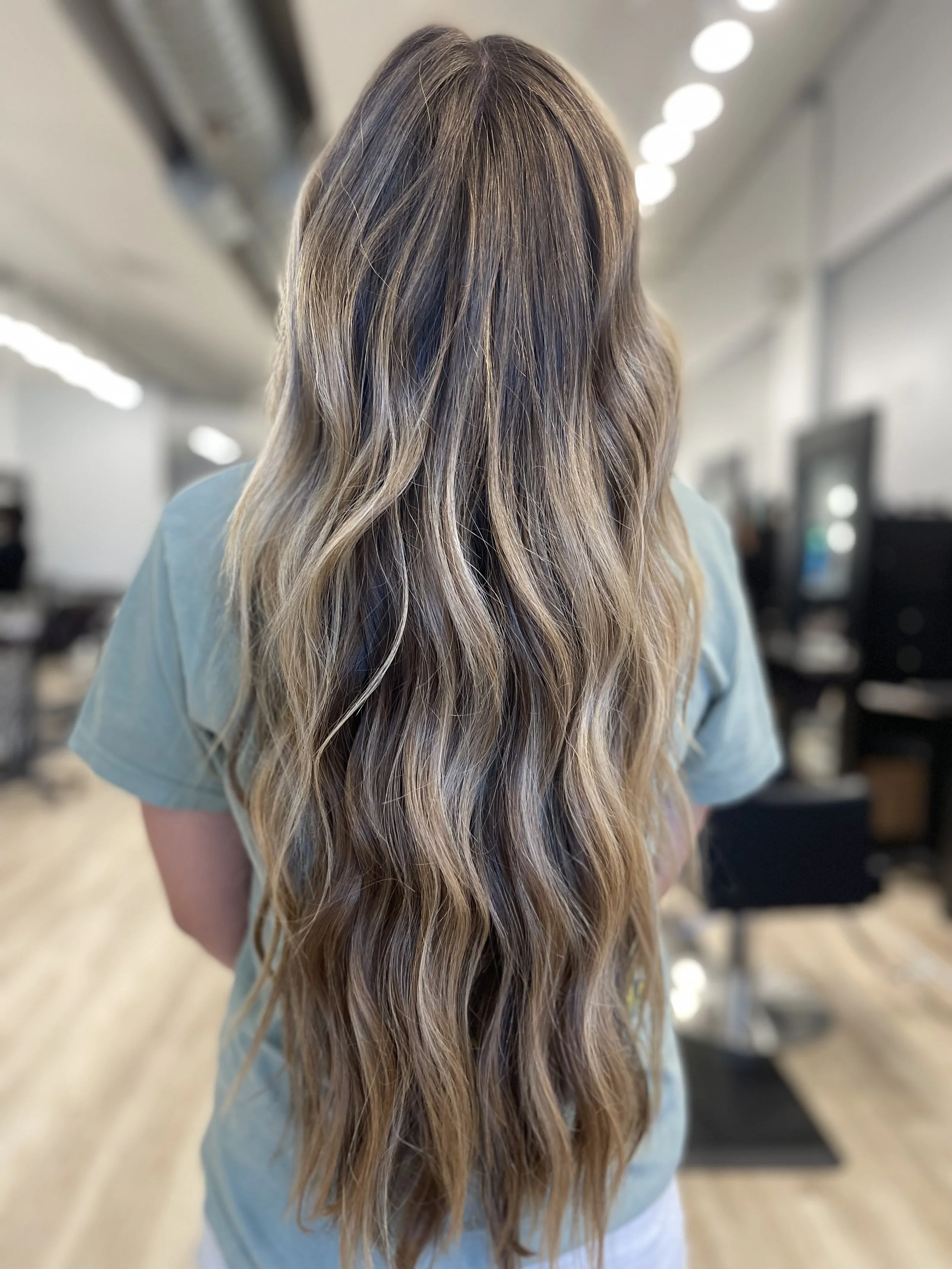 This service is a solid color from roots to ends. Great for grey coverage or wanting to change your base color or going darker all over.